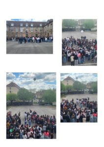Il s’agit d’un temps simple, symbolique et visuel, sans discours, centré sur une action commune. Un fond musical a accompagné ce moment. Chaque élève a reçu un court texte , qui a été lu avant le lâcher de la montgolfière. A chaque élève le texte plastifié a été remis.